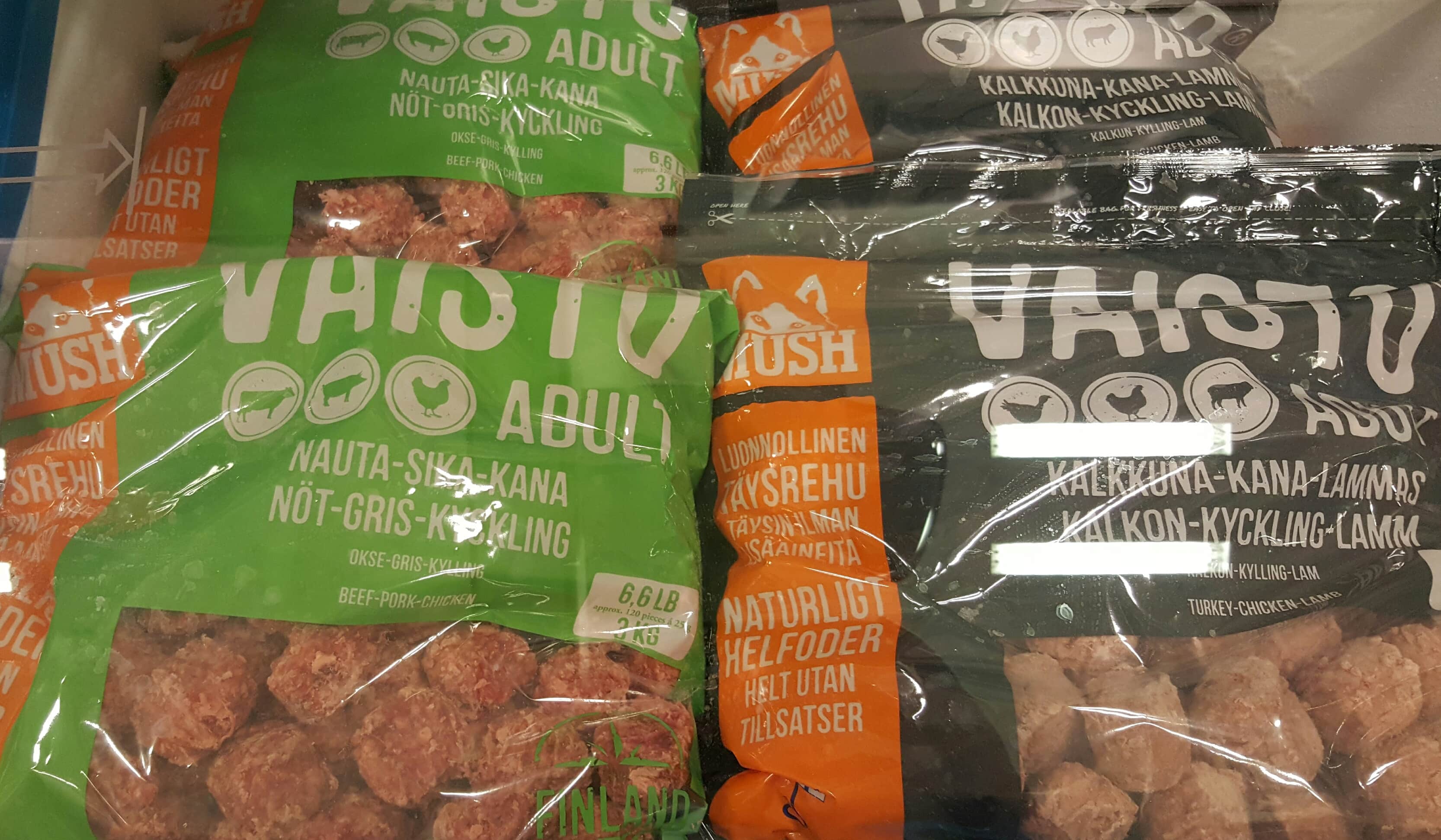 Vi har 800 g påsar och 3 kg påsar samt 500 g korv.